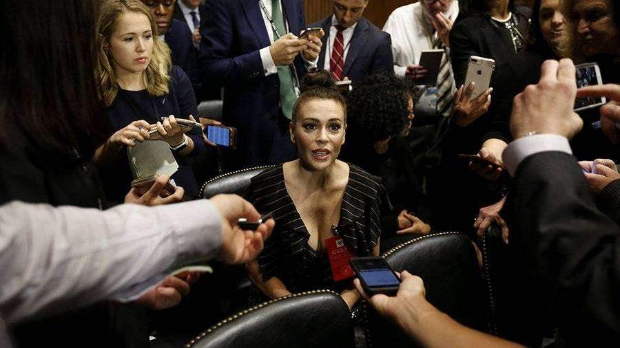 Пользователи соцсетей осудили откровенное платье голливудской актрисы Алиссы Милано, которая пришла на слушания в cенате США.