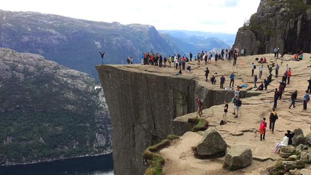 О скале Прекестулен миллионы людей узнали после выхода на экраны голливудского блокбастера «Миссия невыполнима-6». Именно на ее обрывистом краю на высоте 604 м над уровнем моря некогда отважно висел Том Круз. Повторять его трюк категорически не рекомендуется, но добраться сюда непременно стоит. С квадратной и почти плоской вершины размером 25 на 25 м открывается захватывающий дух вид на Люсе-фьорд. Расстояние до скалы от места старта составляет не более 4 км, перепад высот — всего около 330 м, но тропа проходит по сильно пересеченной местности с неожиданными спусками и резкими подъемами, поэтому на ее штурм уйдет никак не меньше пары часов в один конец.