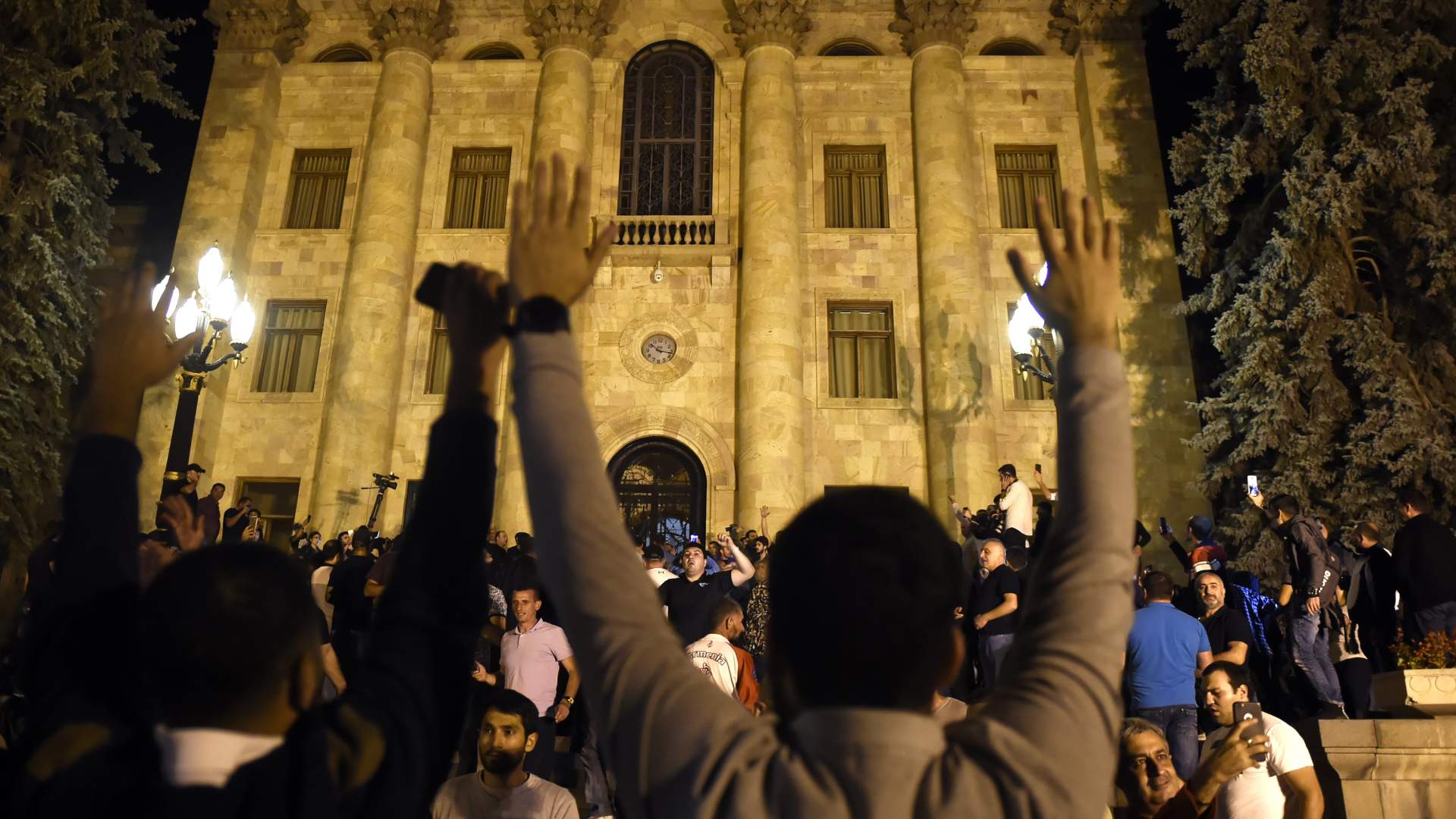 Примерно через три часа блокады Пашинян объявил, что как глава правительства может беспрепятственно пройти в здание. Вместе с ним на территорию проникли несколько сотен митингующих, хотя для входа необходимы специальные пропуска. Депутаты попытались остановить поток людей. «Предатели! РПА [Республиканская партия, имеет большинство в заксобрании], уходи! РПА, уходи!» — скандировали демонстранты в ответ.