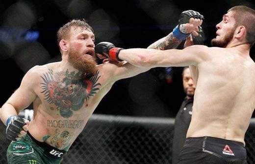 Россиянин Хабиб Нурмагомедов одержал победу над Конором Макгрегором в бое UFC, проведя удушающий прием в конце четвертого раунда. После боя в зрительском зале началась потасовка, в которой приняли участие команды соперников. В результате охране пришлось вмешаться.