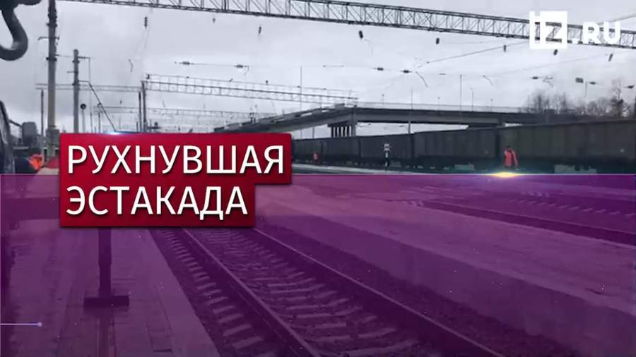 Конструкция обрушилась на проходящий грузовой состав. Пострадал один человек — водитель самосвала, проезжавшего по эстакаде.