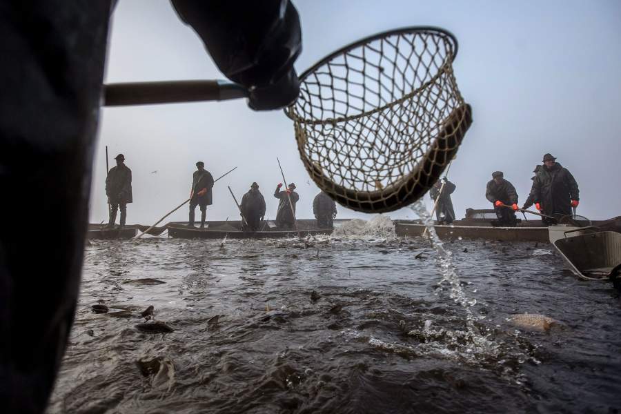До сих пор в эти дни ловля ведется по старым обычаям — рыбаки бьют шестами по воде, чтобы согнать карпов к сетям