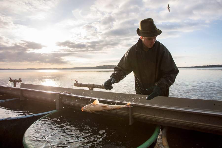 За один раз в сети удается согнать несколько тонн рыбы. Пойманных карпов сортируют и отправляют на откорм — пахнуть болотом они перестанут только через полтора-два месяца содержания в неволе