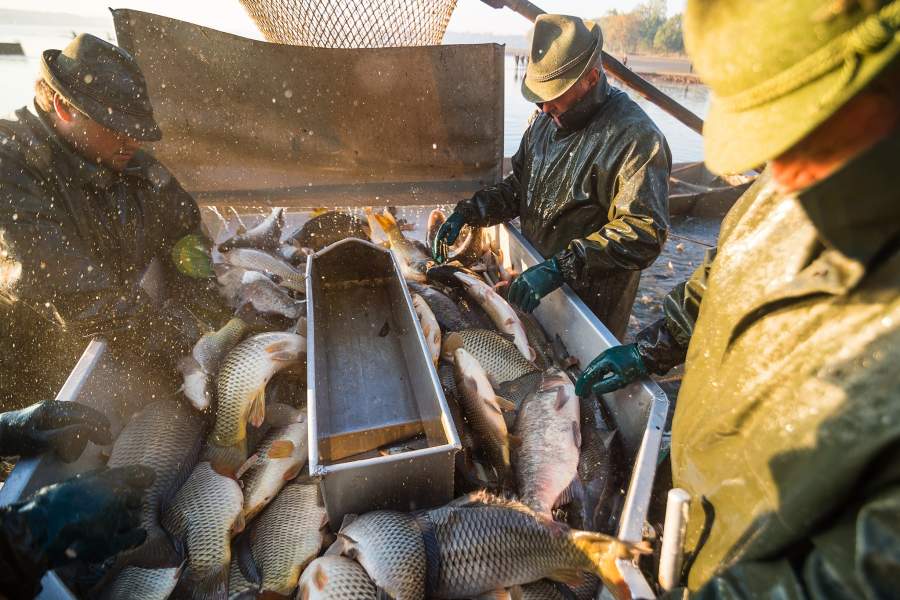 Сезон рождественской рыбалки здесь начинается в октябре. При этом многих из пойманных в это время карпов зимой будут продавать живыми — для этого на улицах накануне Рождества будут установлены специальные бочки