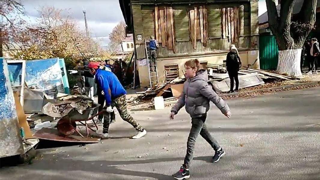 Сначала пришлось остановить ковши у здания XIX века, относящегося к деревянному зодчеству, — практически буквально: вызвать на место полицию, написать заявление о нарушении закона «Об объектах культурного наследия». Потом договорились провести переговоры с администрацией 18 октября. На 20 октября был назначен субботник, или операция «Консервация», чтобы привести подлежащие сносу дома в порядок и подготовить их к зиме.