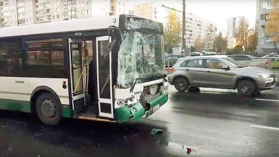 ДТП произошло утром 23 октября на Индустриальном проспекте в Красногвардейском районе. Как сообщает телеканал «360», рейсовый автобус «ЛиАЗ» № 21 столкнулся с маршрутным такси «Газель» № 218 при подъезде к остановке общественного транспорта. По данным сайта kp.ru, от удара у микроавтобуса оказалась смята задняя часть, а пассажиров на задних местах зажало сиденьями. Также пострадали несколько человек, находившихся в салоне автобуса.