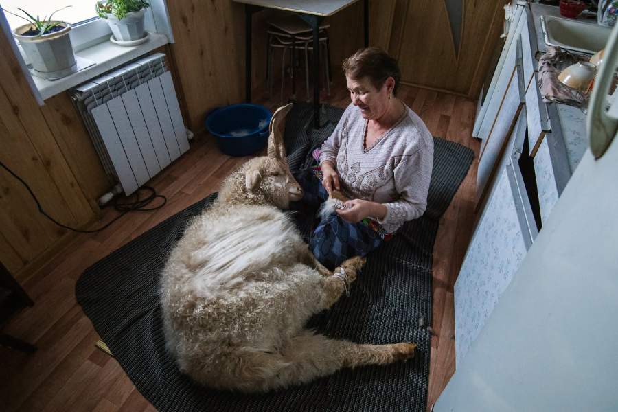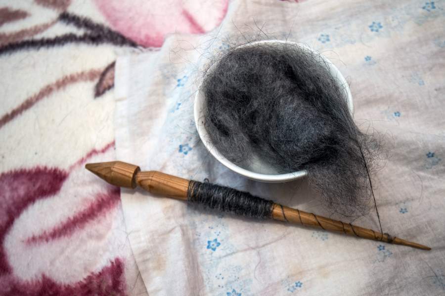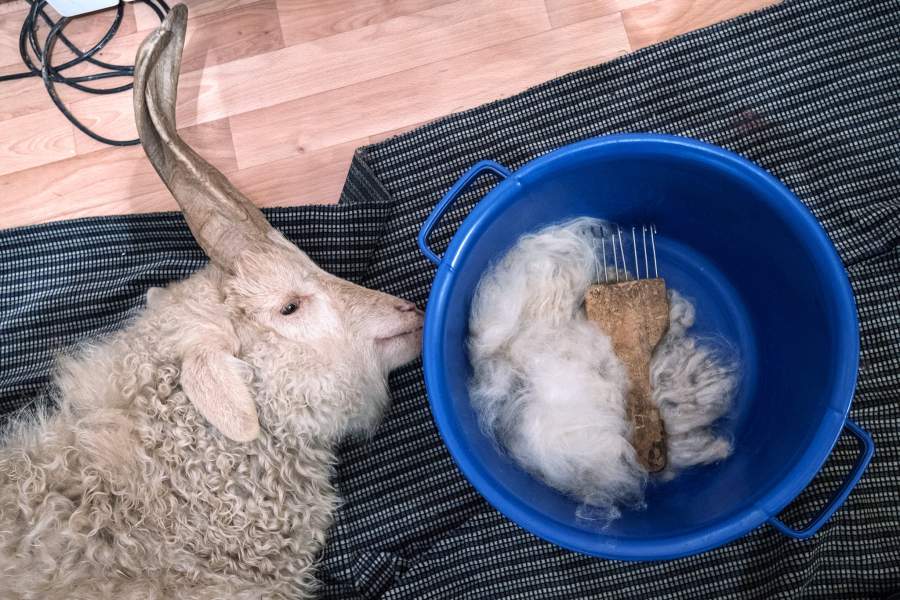 После вычесывания пух отправляется на ручную обработку. Его очищают от мусора, стирают и вновь вычесывают. Всё это нужно для придания мягкости будущему изделию