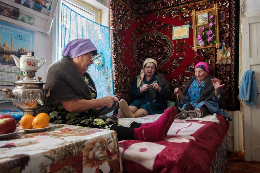 Вязанием платков занимаются потомственные пуховницы. Женщины часто собираются вместе за работой в старинном гнездовье вязальщиц — поселке Саракташ