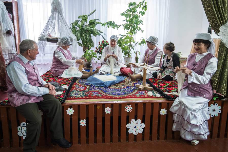 Традиции изготовления платков передаются из поколения в поколение. Мастерица Миннур Ишмухаметова обучает внучек азам рукоделия. Село Жёлтое, в котором они живут, считается один из главных центров ремесла