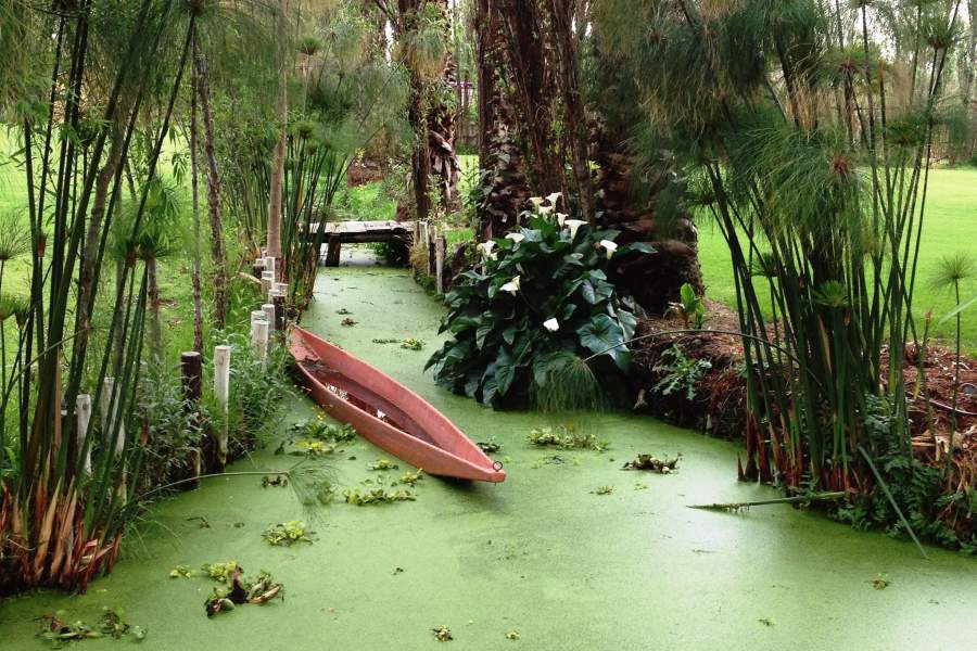 Современные плавучие сады — одна из достопримечательностей Сочимилько, отдаленного пригорода столицы страны, Мехико. Местные жители катают по ним туристов на специальных лодках-плоскодонках