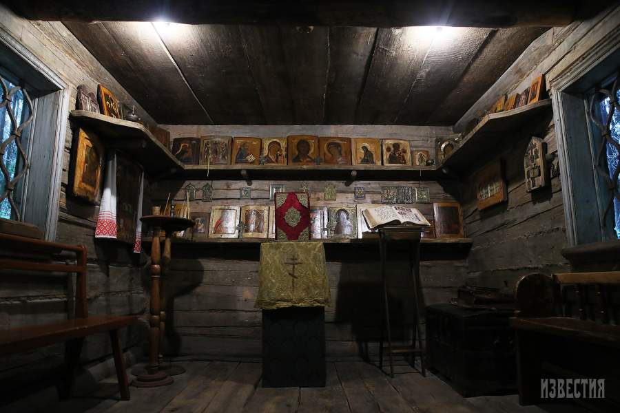 Точно воссозданный интерьер старообрядческого храма, представленный на выставке