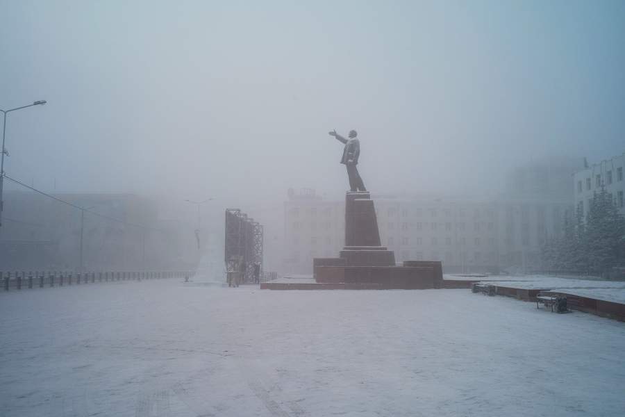 Так в морозные дни выглядит площадь Ленина — центральная в республиканской столице. При этом в действительности Якутск — далеко не самый холодный населенный пункт. Сейчас там около минус 35 градусов, то есть почти на 10 градусов теплее, чем в некоторых селах
