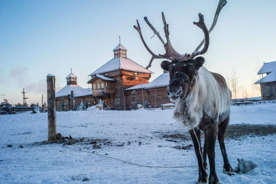 Северный олень у дома одного из жителей Якутска