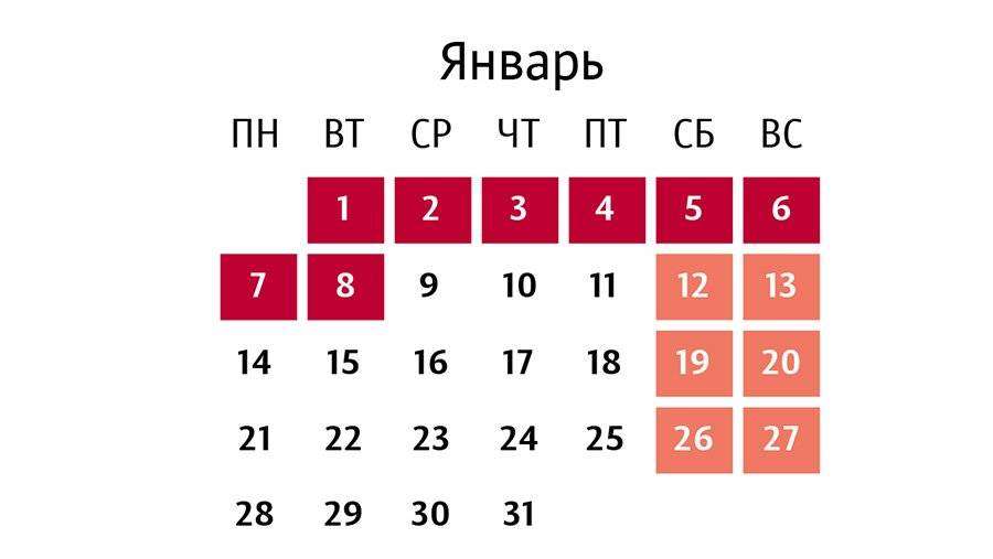 Россияне выйдут на работу в новом году ровно через две недели после новогодних каникул, стартующих в воскресенье, 30 декабря, и завершающихся 8 января.