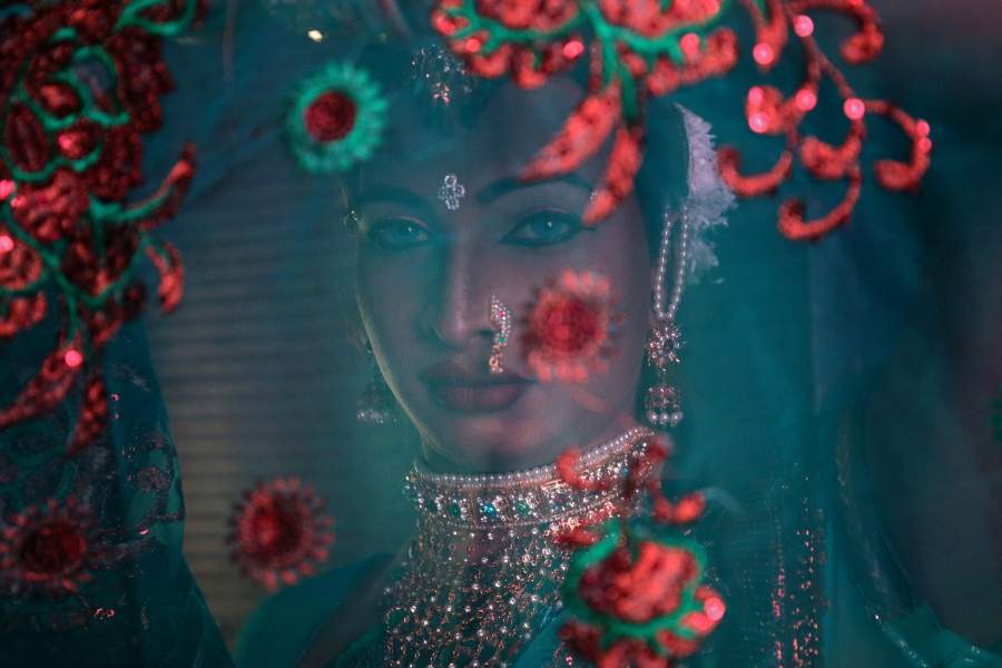 Женщина-трансгендер ждет выхода на сцену во время благотворительного шоу, организованного в Мумбаи, Индия