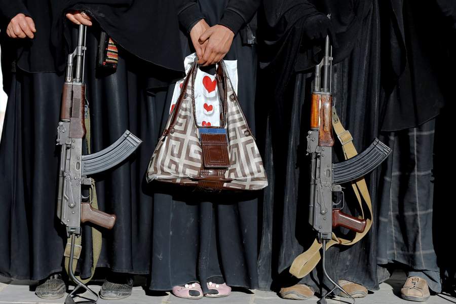 Вооруженные женщины, присоединившиеся к акциям в поддержку движения хуситов в Йемене