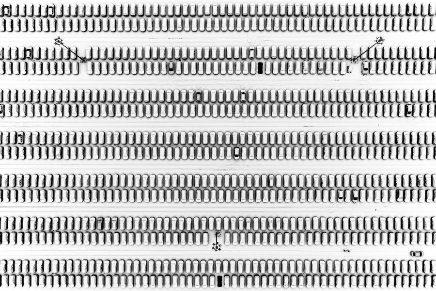 Стоянка новых автомобилей на территории автомобильного завода в Москве