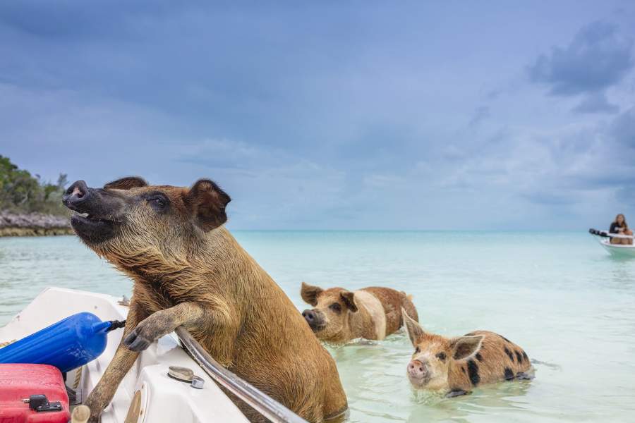 Небольшой, площадью меньше квадратного километра, необитаемый остров Биг-Мейджор, расположенный на Багамах, прославился благодаря свиньям. Всего их здесь обитает около двух десятков, при этом животные являются домашними — они не боятся людей и радостно встречают многочисленные лодки с туристами, которые приплывают сюда, чтобы сфотографироваться с животными и покормить их