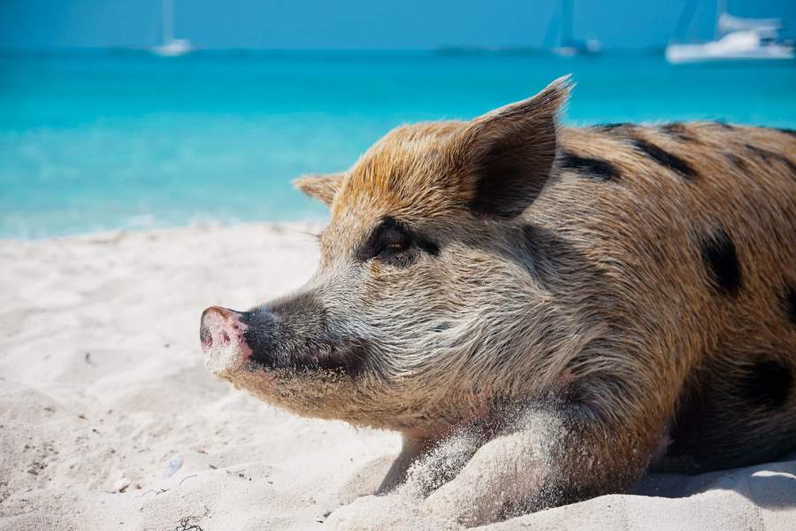 В свободное от встречи туристов время свиньи валяются на пляже или купаются у берега — именно своим вальяжным образом жизни они и покорили многочисленных туристов