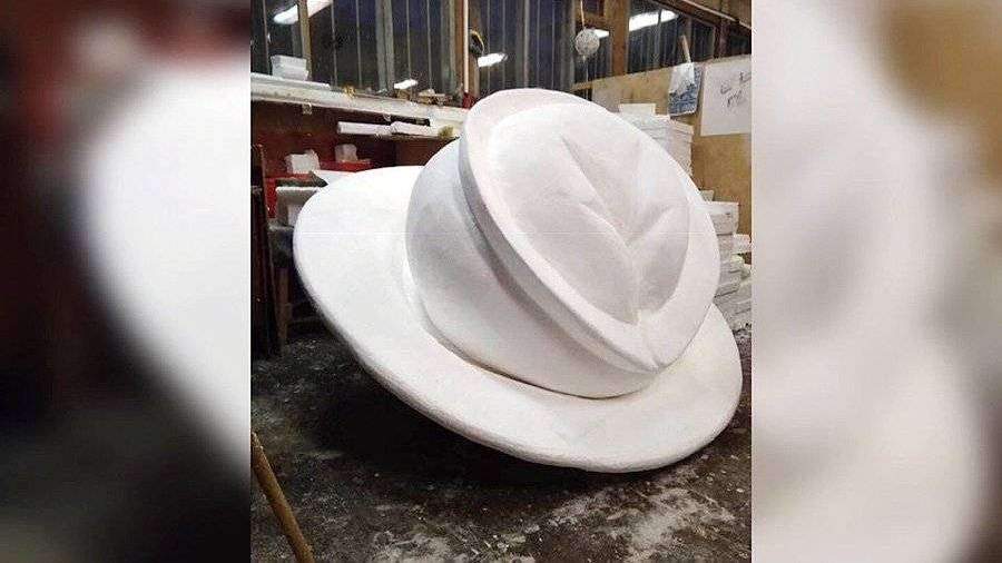 Необычный памятник выполнен из пенопласта. Тарелка, на которой лежит пельмень, имеет диаметр 1,8 м, сам пельмень — 1,4 м.