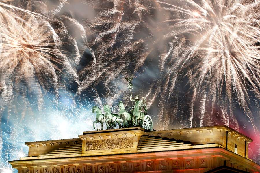 В Германии праздничный салют «вырос» над Бранденбергскими воротами в Берлине
