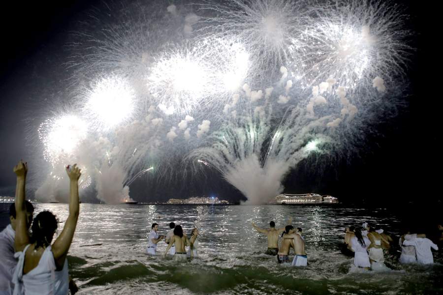 На пляже Копакабана в Рио можно было посмотреть грандиозный салют в честь Нового года
