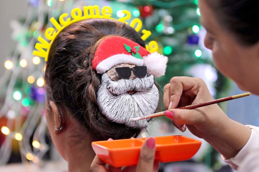 Некоторые проявили особую креативность в выборе не только наряда для праздника, но и прически