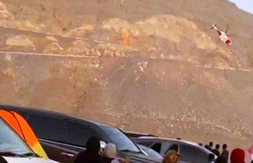 На кадрах видно, как вертолет подлетел к горе вплотную и буквально завис в воздухе в нескольких сантиметрах от склона.