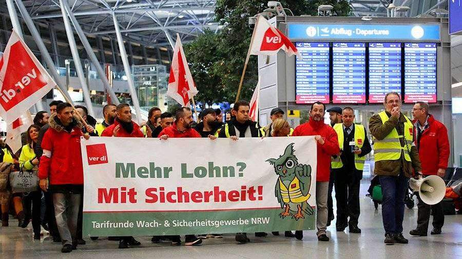 Немецкий профсоюз ver.di запланировал на 10 января забастовку сотрудников служб безопасности в аэропортах Дюссельдорфа, Штутгарта и Кельна (аэропорт Кельн/Бонн). Основная цель — увеличить оплату труда работников с €17,12 до €20 в час.