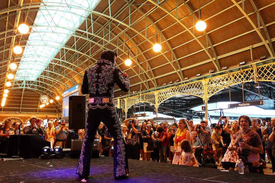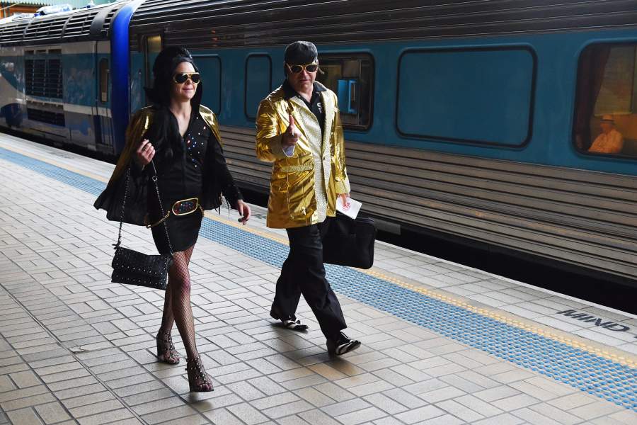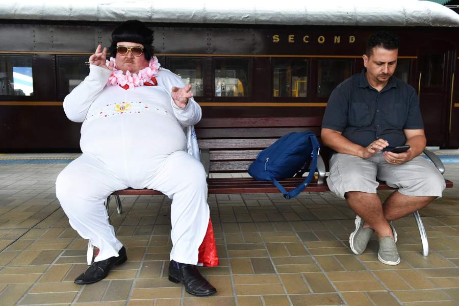 Ежегодный фестиваль Элвиса Пресли в австралийском городке Паркс традиционно собирает тысячи посетителей — двойников короля рок-н-ролла, его жены Присциллы и просто поклонников. 360 км, отделяющие Паркс от Сиднея, они преодолевают на двух поездах, Elvis Express и Blue Suede Express, отправляющихся в путь 10 января. «Известия» посмотрели, что творилось на перроне и в вагонах