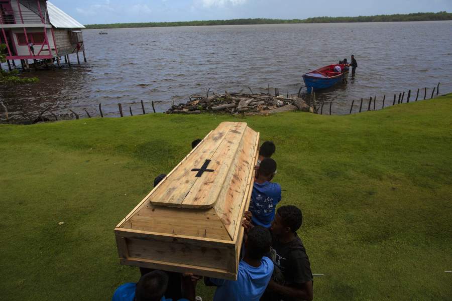 Похороны одного из ловцов, погибшего из-за кессонной болезни. Гроб с его телом на лодке переправят на соседний остров, где есть кладбище