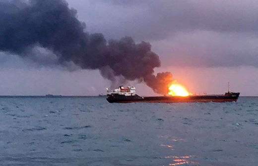 Спасатели сообщили об угрозе взрыва на горящих в Керченском проливе судах