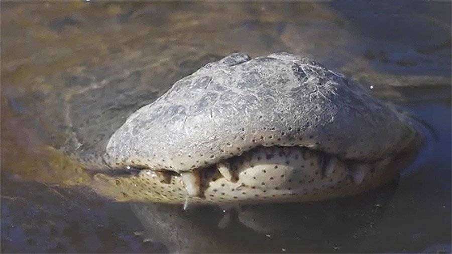 Издание The Charlotte Observer опубликовало видео, на котором заметно, что рептилии практически полностью находятся подо льдом. На поверхности животные оставили только ноздри.