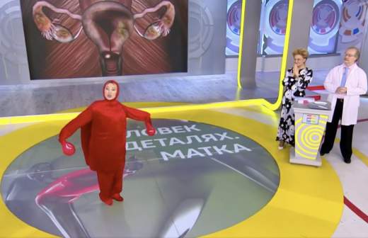 21 февраля в эфире программы «Жить здорово!» актриса Светлана Галка в костюме матки станцевала и спела об устройстве женской половой системы и любви к детям.