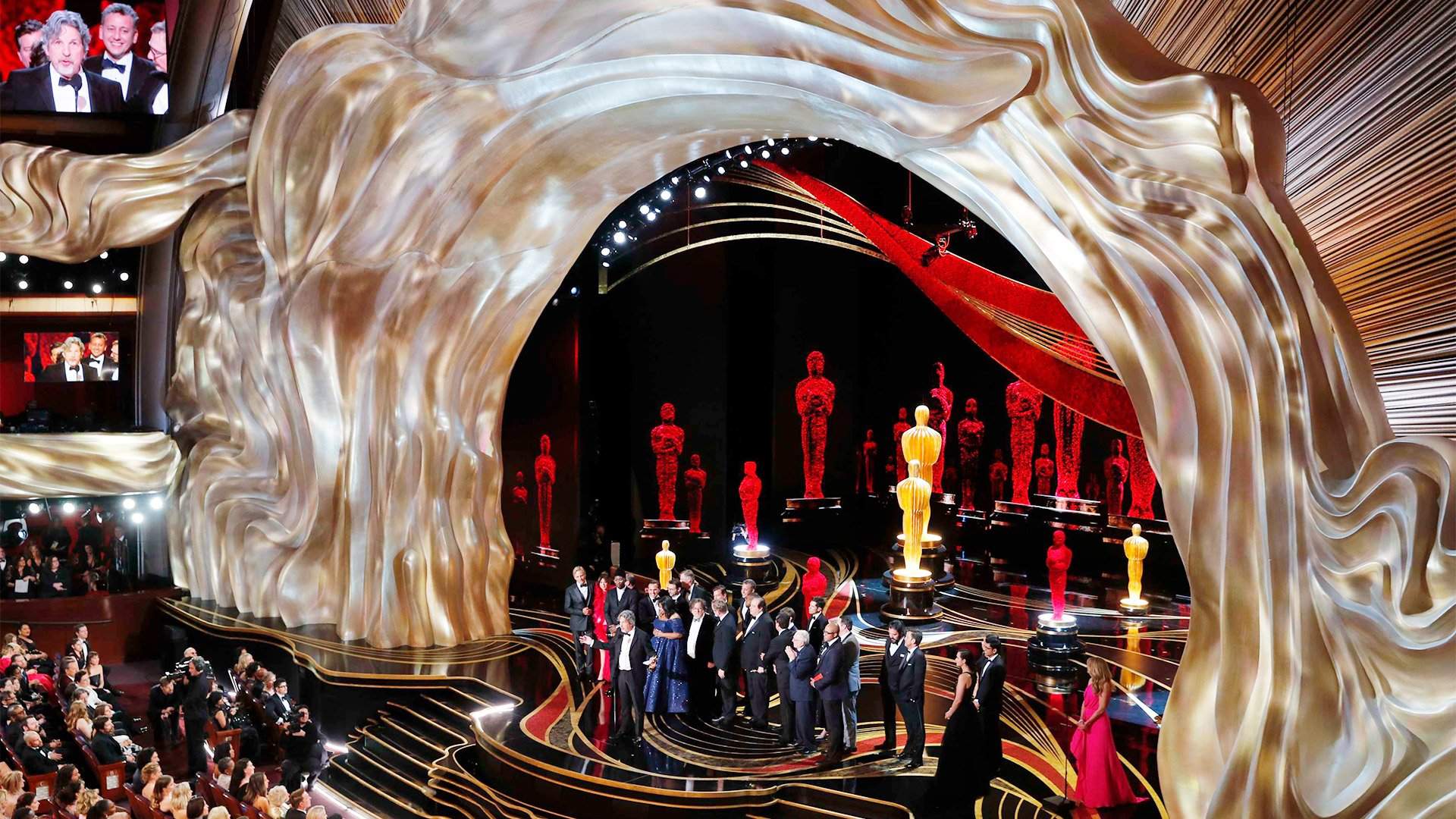 Оскаровские драмы и комедии нынешнего сезона начались задолго до церемонии вручения наград. Резкое падение телерейтинга главной киноцеремонии в прошлом году напрягло потенциальных рекламодателей, и по слухам, спонсоры попросили дать им гарантии — то есть если телерейтинг упадет ниже обозначенного ими уровня, заплаченные за рекламу деньги придется вернуть. Финансовая опасность привела к усиленной экономии средств, в результате чего знаменитая лестница, ведущая в театр «Долби», осталась без позолоченных оскаровских великанов и корзин с цветами. Допущенным туда журналистам было просто не с кем фотографироваться. Особенно расстроились туристы, которые запланировали посещение Лос-Анджелеса в самый популярный день в году. Зато журналисты, побывавшие в комнате прессы, куда по традиции приходят победители, остались довольны. Лауреаты были приветливы и словоохотливы.