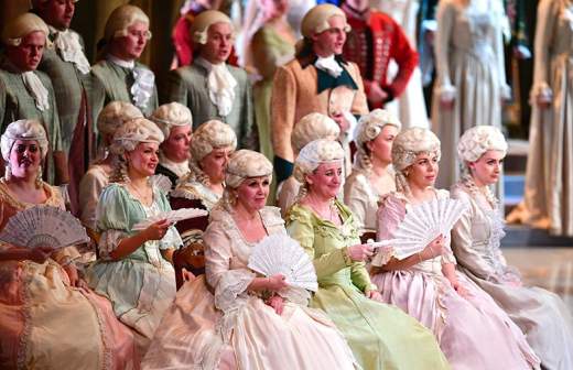 После осмотра фойе гости проследовали в зал. Церемония началась с польки «Трик-трак» Иоганна Штрауса в исполнении детского хора театра. С последними нотами пьесы открылся занавес, за которым на золотом подиуме величественно стояла императрица. Под полонез из «Спящей красавицы» Чайковского на поклон к ней прибывали гости. Дефиле театральных костюмов завершилось появлением на сцене кареты: из нее под фанфары Прокофьева вышла Золушка, держащая в руках хрустальный символ Года театра. Ведущий церемонии, народный артист РФ Николай Цискаридзе пригласил на сцену Ольгу Голодец.