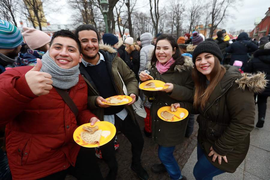 В центре города блинами угощали абсолютно всех. Похоже, что традиционное русское блюдо пришлось по вкусу и гостям столицы из Юго-Восточной Азии