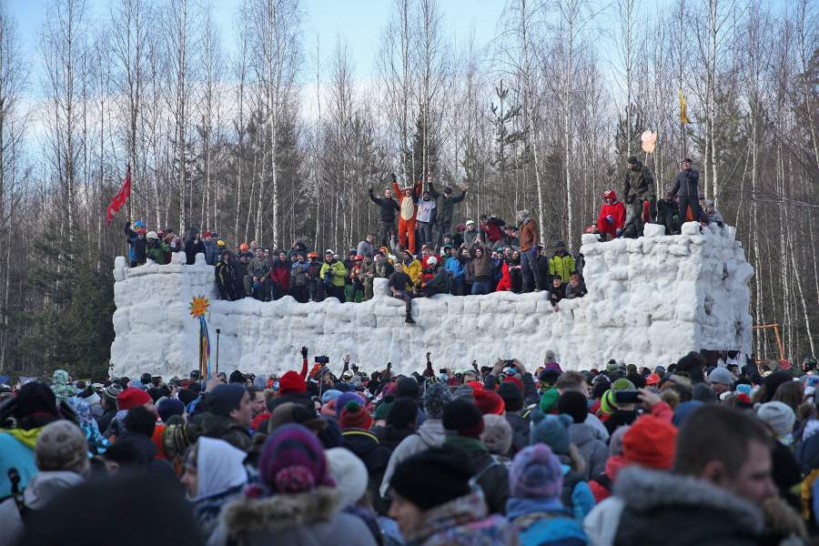 По традиции «Бакшевской Масленицы» одним из этапов празднования стало взятие построенного из снега масленичного городка