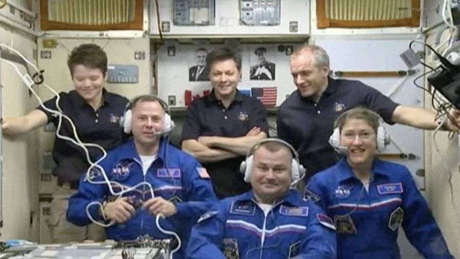 На МКС экипаж «Союза» встретили космонавт Олег Кононенко, астронавты Энн Макклейн и Давид Сен-Жак.