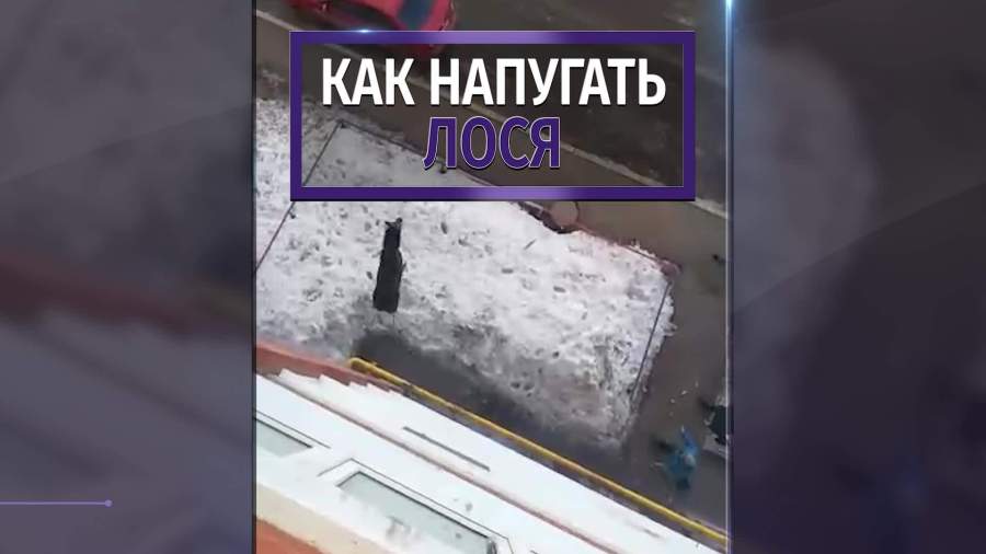 Женщина швырнула котом в мечущегося во дворе жилого дома лося