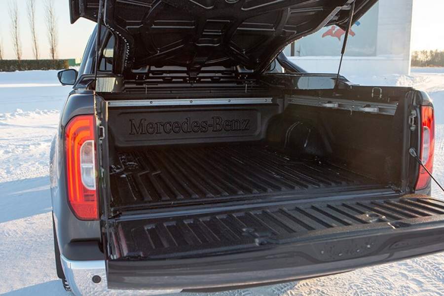 Заявленная грузоподъемность X-Class чуть меньше, чем у европейских версий. Зато автомобиль попадает в категорию «до тонны» и может беспрепятственно ездить в пределы Третьего транспортного кольца. При этом грузовой каркас немецкого пикапа касается