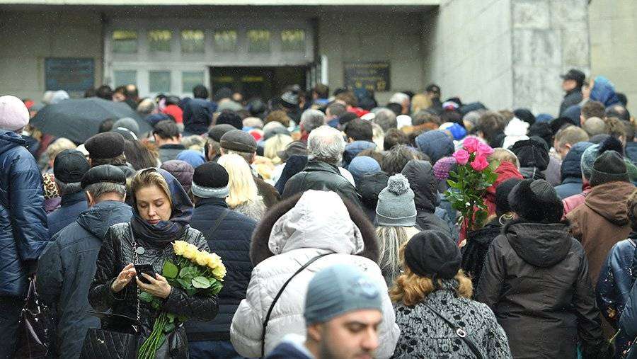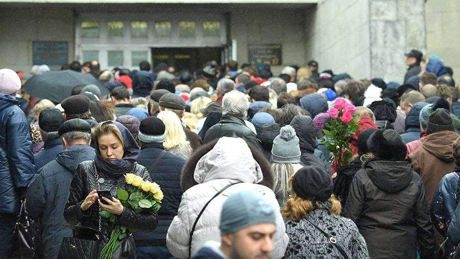 На представленных РЕН ТВ кадрах видно, что люди с букетами в руках выстроились в очередь, чтобы проститься с артисткой.