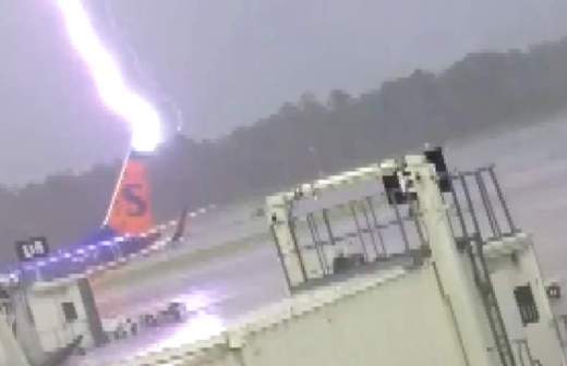 Молния попала в фюзеляж самолета при заходе на посадку в международном аэропорту города Сочи.
