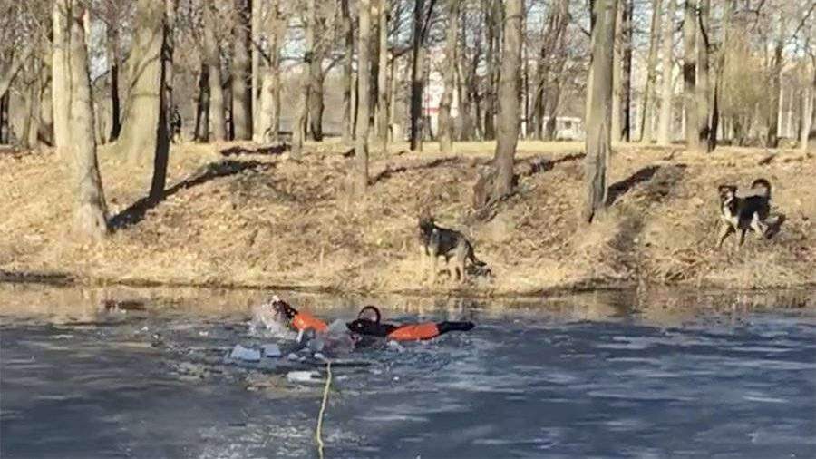 В Санкт-Петербурге спасли двух собак с острова на озере в одном из парков. Операцию провели сотрудники организации «Кошкиспас».