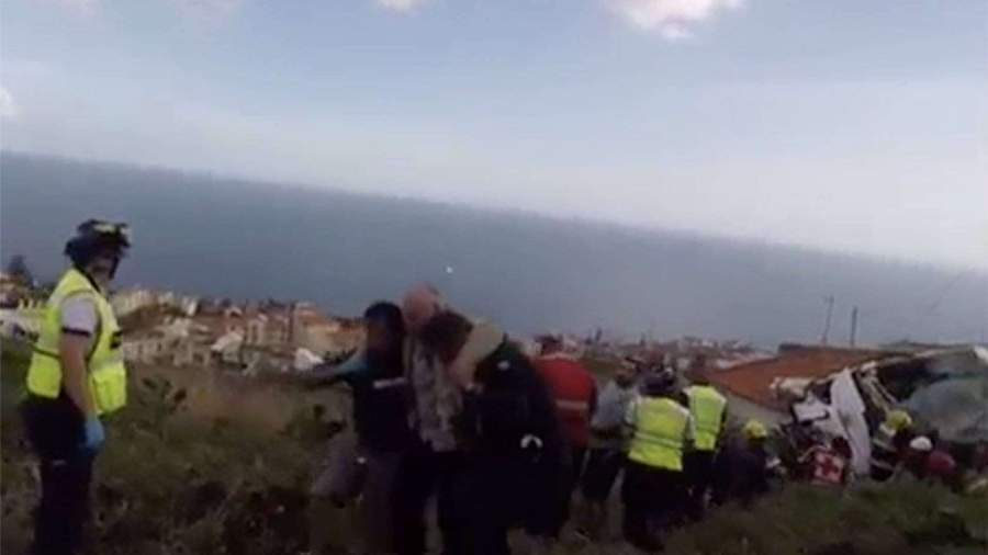 В Сети появились первые кадры с места аварии с туристическим автобусом на португальском острове Мадейра.