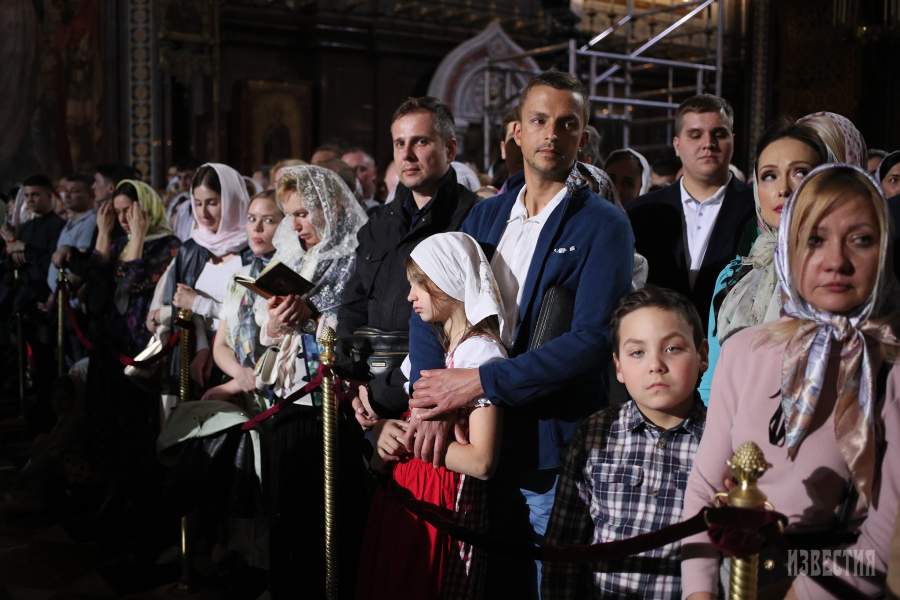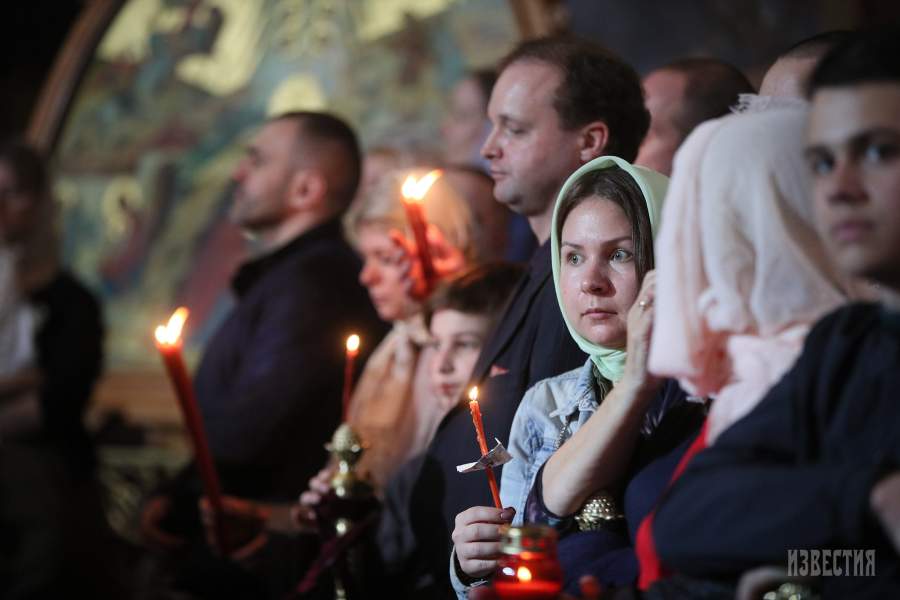 Москвичи и гости столицы на пасхальном богослужении