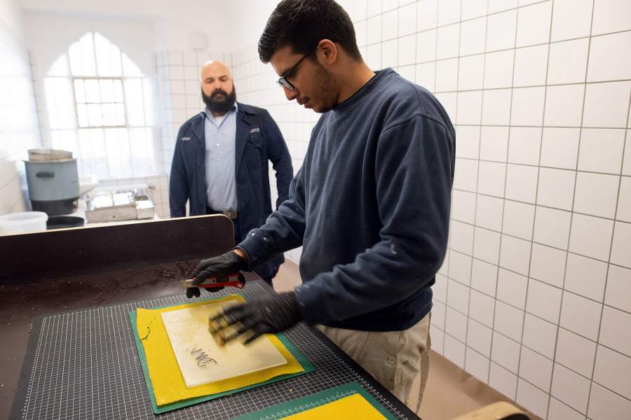 Бывший террорист готовит восковые диски для ульев в тюремной мастерской