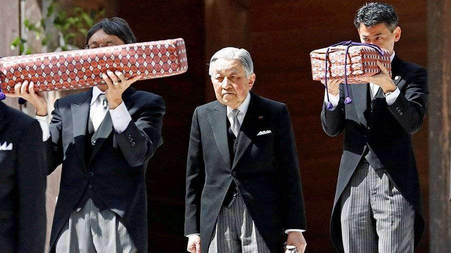 Акихито оставил престол по собственному желанию в связи с преклонным возрастом ранее 30 апреля. Накануне он завершил религиозные и семейные ритуалы, связанные с процедурой отречения. В древнем наряде он посетил три святилища, посвященные синтоистским божествам, предкам-императорам и богине солнца Аматэрасу, от которой, согласно преданию, пошла императорская династия в Японии.