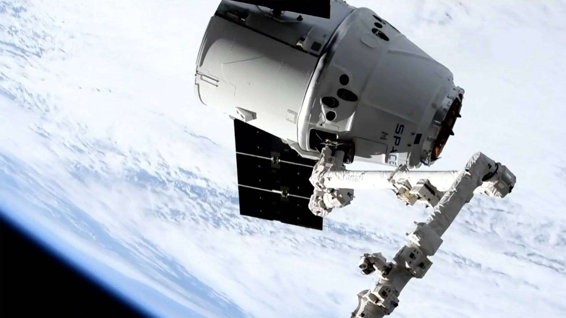 Рука-манипулятор Международной космической станции (МКС) захватила американский грузовик Cargo Dragon, это необходимо для последующей стыковки.