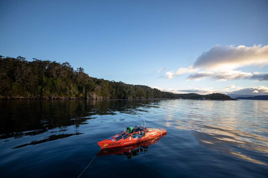 Двое суток яхта с покорителем океанов пробивалась через шторм к чилийскому берегу, откуда отправилась в аргентинский порт Ушуая, конечный пункт путешествия